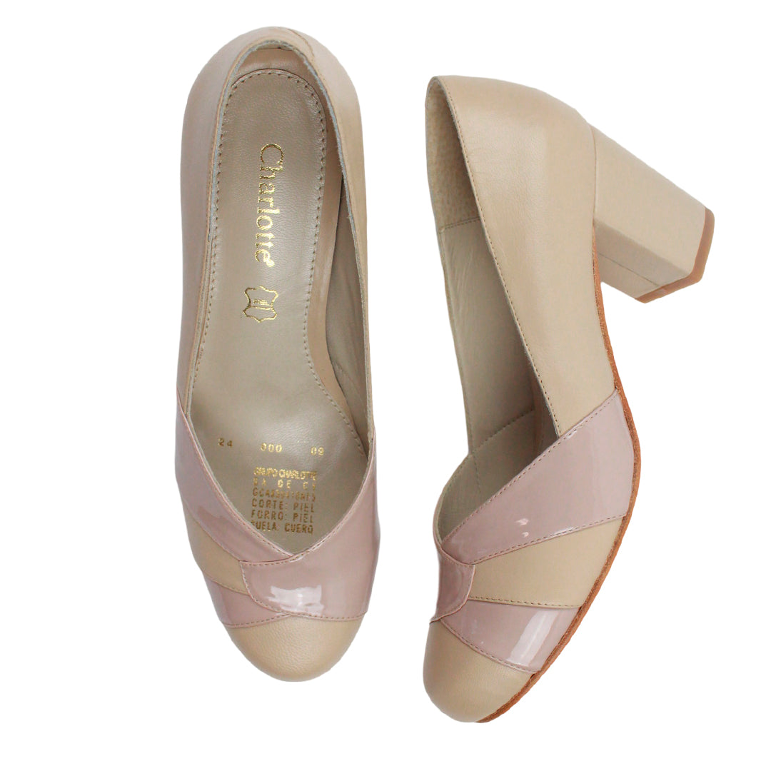 Zapatilla de tacón ancho altura media y punta redonda color nude