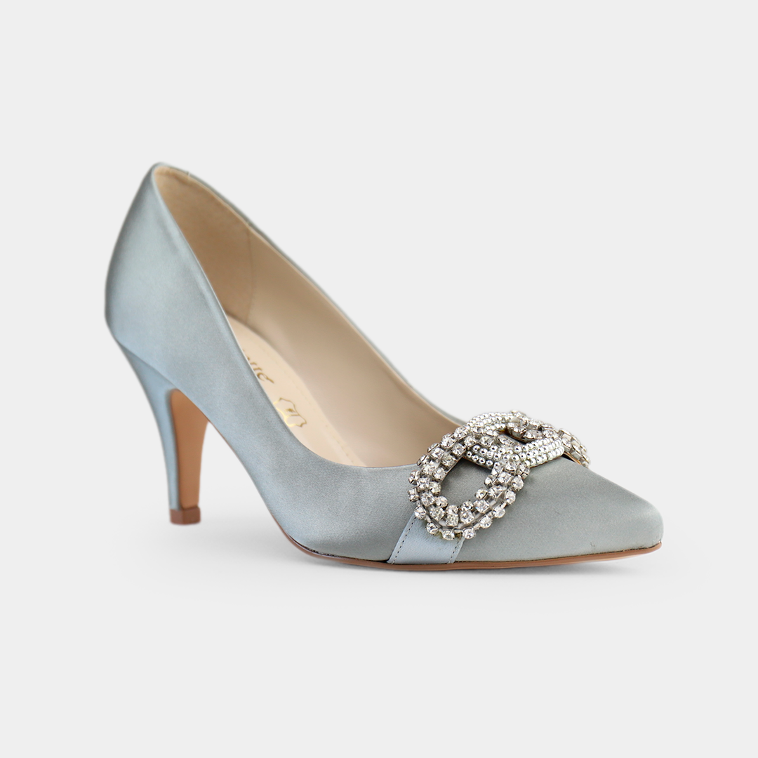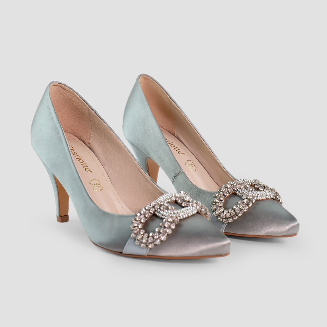 ¡Los stilettos en color plata son la elección perfecta para agregar glamour a tu estilo! Su diseño elegante y llamativo captura la atención en cualquier ocasión especial, desde fiestas de día hasta eventos nocturnos, ¡incluso es una buena alternativa para novias! Estos tacones con herraje en piedras, destacan por su sofisticación y originalidad. Fabricados con materiales de alta calidad en México.