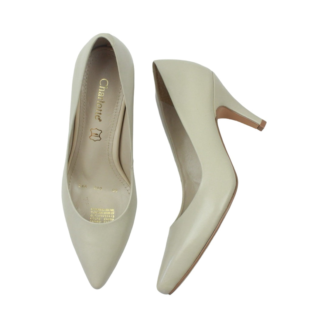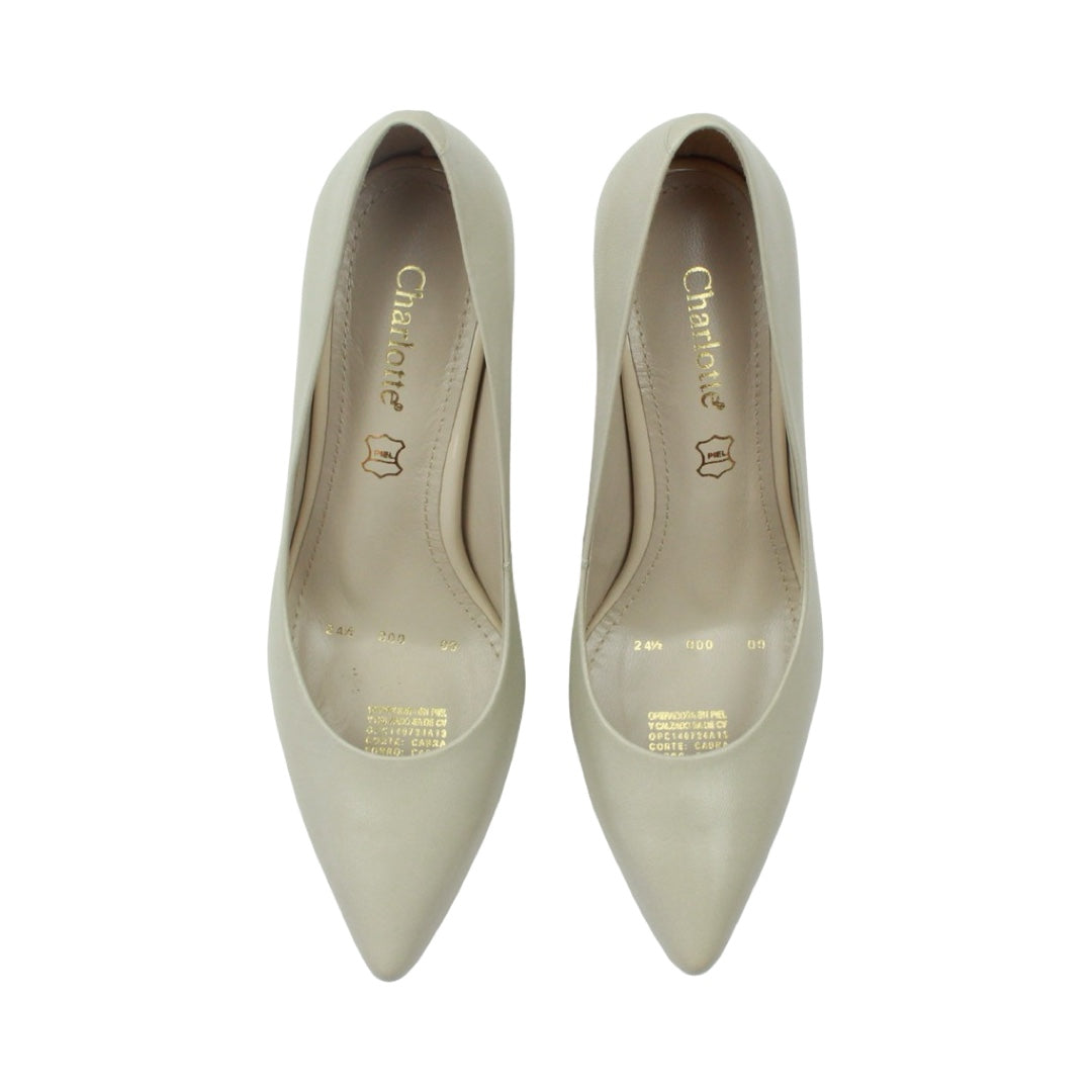Luce sofisticada con estos zapatos de tacón medio para mujer en piel, ideales para cualquier evento. Su tacón delgado estiliza tus piernas y brinda un look elegante, mientras el color marfil combina fácilmente con cualquier outfit.